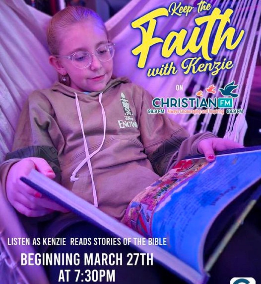 Listen weekday evenings for Kenzie's stories of the Bible series. A 101 day reading from Creation to Revelation. AND for her reading of Jesus Calling The Story of Easter by Sarah Young
